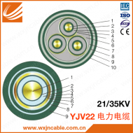 21/35KV YJV32-铜芯交联聚乙烯绝缘钢丝铠装聚氯乙烯护套中高压电力电缆
